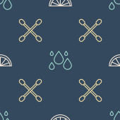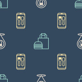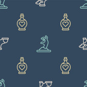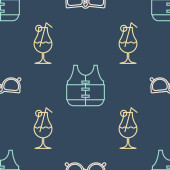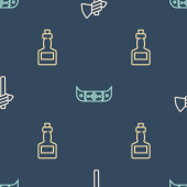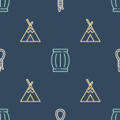 Ustaw linię Szeryf Hexagram, indyjskie tipi lub wigwam i butelka whisky i szkło na płynny wzór. Wektor.