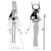 Zdjęcie "Portret Ra, egipskiego boga słońca. Najważniejszy bóg w starożytnym Egipcie. Znani również jako Amun-Ra i Ra-Horakhty. Ilustracja wektora. Człowiek z głową Jastrzębia i dyskiem słonecznym" może być wykorzystywane do celów osobistych i komercyjnych zgodnie z warunkami zakupionej licencji Royalty-free. Obraz jest dostępny do pobrania w jakości wysokiej rozdzielczości do 5760x3840.