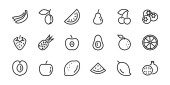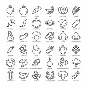 Wegańskie wegańskie wektorowe ikony liniowe. Zbieranie elementów wektorowych żywności do analizy biznesowej projektowania świeżych zdrowych pieniędzy handlu wyszukiwania ikon linii inwestorów. Zestaw znaków-wektorów.