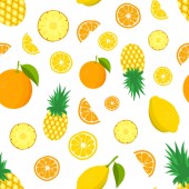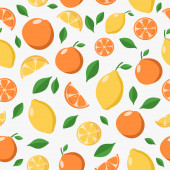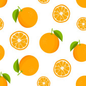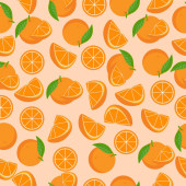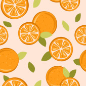 Płynny wzór z pomarańczami i liśćmi. Tło cytrusowe z soczystymi pomarańczami. Ilustracja wektora.