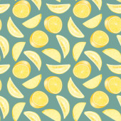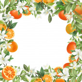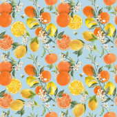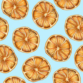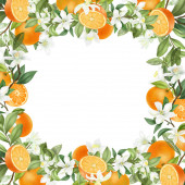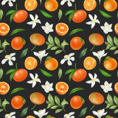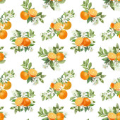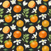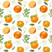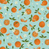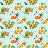 Płynny wzór z ręcznie rysowane kwitnące gałęzie drzewa pomarańczowego na niebieskim tle