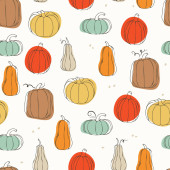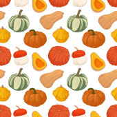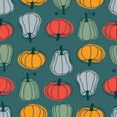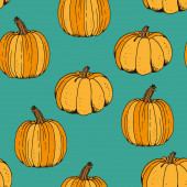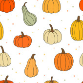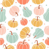 Jasny, wesoły wzór z dyniami. Nadaje się do jesiennego wystroju, dożynki, Halloween, zdrowej żywności.