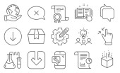 Zestaw ikon biznesowych, takich jak słowa kluczowe, Dzień środowiska. Dyplom, pomysły, uratować planetę. Olej tłoczony na zimno, Przewiń w dół, Rozszerzona rzeczywistość. Pipeta chemiczna, lista kontrolna paczek, plan ustawień. Wektor