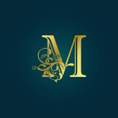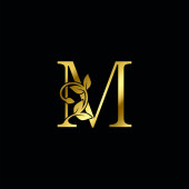 Złota początkowa litera M Logo Ikona, Botaniczna natura Liść Wektor Projekt szablonu Logo.
