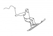Zdjęcie "Ciągły rysunek jednej linii. Młody snowboardzista jeździ szybko na snowboardzie w Snowy Mountain. Koncepcja sportu turystycznego. Wektor ilustracja czarny na biały" może być wykorzystywane do celów osobistych i komercyjnych zgodnie z warunkami zakupionej licencji Royalty-free. Obraz jest dostępny do pobrania w jakości wysokiej rozdzielczości do 5760x3840.