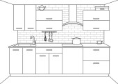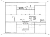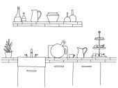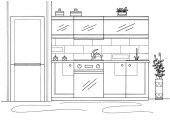 Meble kuchenne. Ilustracja wektora w stylu szkicowym.