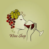 Wino, logo winnicy z kobiecą twarzą. Picie, symbole napojów alkoholowych lub ikona. Wino i szklane logo. Idealny do baru, restauracji.