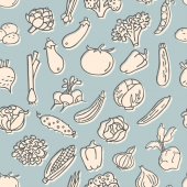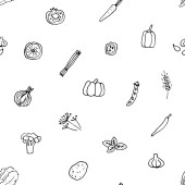 Płynny wzór warzyw. Ręcznie rysowane wektor ilustracji w stylu doodle, izolowane na białym tle.