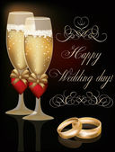 Szczęśliwy karty zaproszenia ślubne w stylu vintage, ilustracji wektorowych
