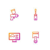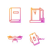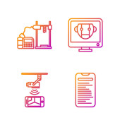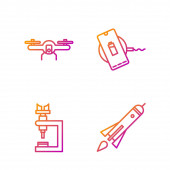 Zdjęcie "Zestaw linii Robotic robot ręka fabryki, Statek rakietowy z ogniem, Bezprzewodowa ładowarka i ekspres do kawy. Ikony kolorów gradientu. Wektor." może być wykorzystywane do celów osobistych i komercyjnych zgodnie z warunkami zakupionej licencji Royalty-free. Obraz jest dostępny do pobrania w jakości wysokiej rozdzielczości do 5760x3840.