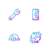 Zdjęcie "Ustaw linię Hełm bezpieczeństwa pracowników, hełm bezpieczeństwa pracowników, Klucz młotka i klucza i ikona zamkniętych drzwi. Wektor." może być wykorzystywane do celów osobistych i komercyjnych zgodnie z warunkami zakupionej licencji Royalty-free. Obraz jest dostępny do pobrania w jakości wysokiej rozdzielczości do 5760x3840.
