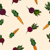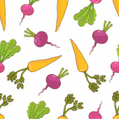 wektor bezszwowy wzór z warzywami. tło z pieprzem, pomidorem i czosnkiem. do pakowania, menu i projektowania tkanin. styl wegetariański i wegański.