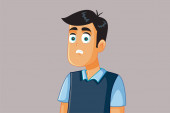 Nieszczęśliwy człowiek z kciukami w dół wyrażając dezaprobatę