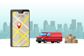 Zdjęcie "Samochód dostawczy i smartfon z aplikacją nawigacyjną." może być wykorzystywane do celów osobistych i komercyjnych zgodnie z warunkami zakupionej licencji Royalty-free. Obraz jest dostępny do pobrania w jakości wysokiej rozdzielczości do 5760x3840.