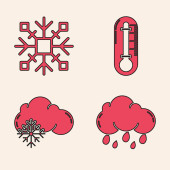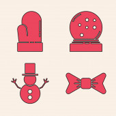 Zestaw kuli śnieżnej Boże Narodzenie z upadkiem śniegu, płatki śniegu, bałwana Bożego Narodzenia i termometr meteorologiczny ikona pomiarowa. Wektor.