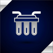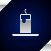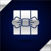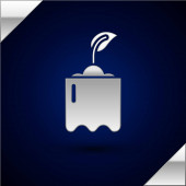 Srebrna ikona rakiety fajerwerków izolowana na ciemnoniebieskim tle. Koncepcja zabawy. Symbol pirotechniczny materiałów wybuchowych. Wektor.