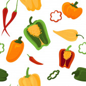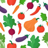 Warzywa bez szwu wzór. Cebula i papryka, czosnek i marchew, pomidor i papryka chili. Ilustracja wektora.