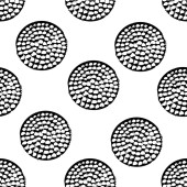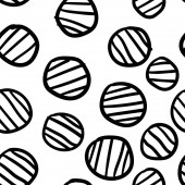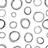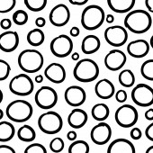 Geometryczne tło z nierównymi okręgami, pierścieniami. Abstrakcyjny okrągły, bezszwowy wzór. Ręcznie rysowane kropki na białym tle. Ilustracja wektora.