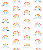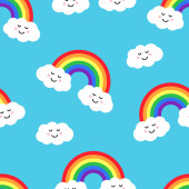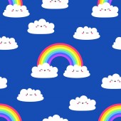 Wektor bezszwowy wzór ręcznie rysowane doodle szkic tęcza z Kawaii twarz izolowane na niebieskim tle