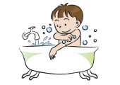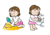 wektor ilustracja słodkie dziewczyna mycie w łazience, higiena koncepcja