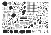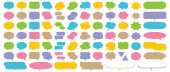 Duży zestaw okien dialogowych różne warianty rysowane ręcznie. Wektorowe płaskie ilustracje. Kolekcja pastelowy kolor doodle do rozmowy, dialogu, dekoracji na białym tle.