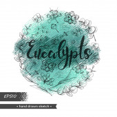 Zdjęcie "Koło wypełniło liście eukaliptusa, młode pędy i gałęzie eukaliptusa kwiatami, pączkami i nasionami oraz literami Eukaliptusa. Szczegółowe ręcznie rysowane szkice, ilustracja wektorowa botaniczna. " może być wykorzystywane do celów osobistych i komercyjnych zgodnie z warunkami zakupionej licencji Royalty-free. Obraz jest dostępny do pobrania w jakości wysokiej rozdzielczości do 5760x3840.