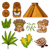 Kreatywny wektor kreskówki projekt sztandar z elementów kulturowych cywilizacji Majów izolowane na białym tle