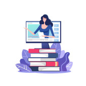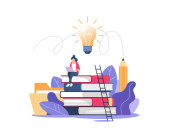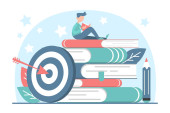 Zdjęcie "Osoba zdobywa wiedzę na sukces i lepsze pomysły. Edukacja online lub koncepcja szkolenia biznesowego, kursy na odległość, przewodniki, przygotowanie do egzaminu, nauka w domu. Ilustracja wektora." może być wykorzystywane do celów osobistych i komercyjnych zgodnie z warunkami zakupionej licencji Royalty-free. Obraz jest dostępny do pobrania w jakości wysokiej rozdzielczości do 5760x3840.