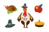 Święto Dziękczynienia, sezon jedzenie indyk wino jabłko ikony dyni