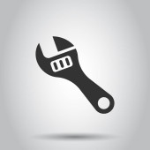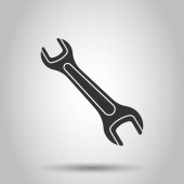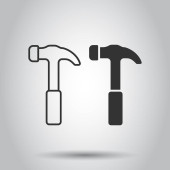 Młot z ikoną klucza w płaskim stylu. Praca wektor ilustracji instrumentu na białym odizolowanym tle. Koncepcja działalności w zakresie sprzętu naprawczego.