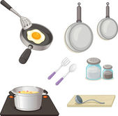 Gotowanie śniadanie, wektor top view kolor szkic ilustracja. Zestaw ręcznie narysowanych porannych posiłków. Restauracja lub kawiarnia brunch menu elementy projektu.