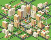 Transport ulice miasta skrzyżowania z domami i drzewami. Izometryczny widok z góry na transport miejski