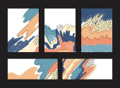 Abstrakcyjne tło współczesności. ręcznie rysowane z obiektów bazgrołów i różnych kształtach. Szablon geometryczny z elementami pociągnięcia pędzla. Malarstwo plakat wektor ilustracja