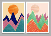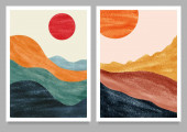 Streszczenie nowoczesnego trendu. wektor Zestaw kreatywnych minimalistycznych ręcznie malowanych ilustracji do mediów społecznościowych, dekoracji ścian, pocztówek lub okładek broszur
