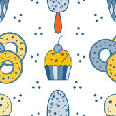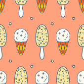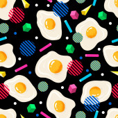 Płynny wzór z teksturowanymi jajami i figurami geometrycznymi. Modny odcisk. Wektor.