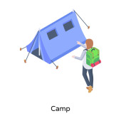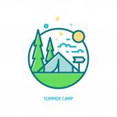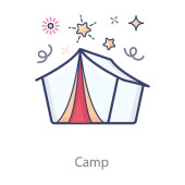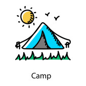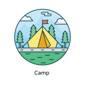 Podstawowe zakwaterowanie na świeżym powietrzu, obóz letni płaska ikona