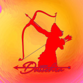 Subh Dussehra oznacza Happy Dussehra w języku angielskim. Karta okolicznościowa z łukiem i kołczanem na festiwal Navratri.