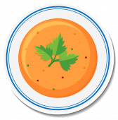 Kuchnia włoska, odizolowana ikona miski z pomidorową zupą kremową i liściem pietruszki na wierzchu. Dania wegetariańskie i wegańskie gotowane w domu lub restauracji. Pikantny meksykański posiłek w restauracji. Wektor w płaskim stylu