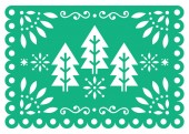 Boże Narodzenie skandynawski wektor sztuki ludowej projekt kartki okolicznościowej w kolorze białym na zielonym tle w formacie 5x7 z choinkami, ptakami, kwiatami i fińskim domu. Nordic Boże Narodzenie świąteczne tło z elementami kwiatowymi, zwierzęta, gwiazdy i płatki śniegu