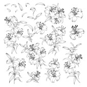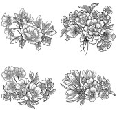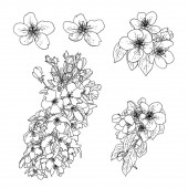 Ręcznie rysowane elementy projektowe sakura kwiaty kolekcja.