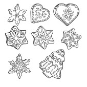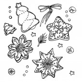 Doodle zestaw piernika. Ciasteczka o różnych kształtach. Białe tło, izolacja. Ilustracja.