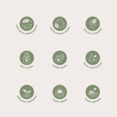 Kosmetyki okrągłe izolowane produkt wektor ikona zestaw, okrągły odznaka linia sztuka styl ilustracja.