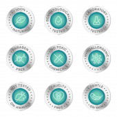 Kosmetyki okrągłe izolowane produkt wektor ikona zestaw, okrągły odznaka linia sztuka styl ilustracja.