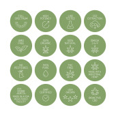 Kosmetyki okrągłe izolowane produkt wektor ikona zestaw, okrągły odznaka linia sztuka styl ilustracja.