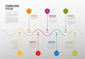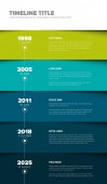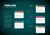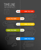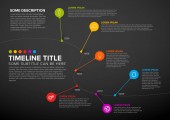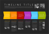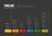 Wektorowy wielofunkcyjny Infograficzny wzór osi czasu wykonany z pięciu żółtych, pomarańczowych i czerwonych bloków w czarnym zaokrąglonym pojemniku na ciemnym tle