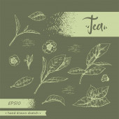 Zdjęcie "Kolekcja gałęzi z liśćmi i kwiatami drzewa herbacianego. Szczegółowe ręcznie rysowane szkice, ilustracja wektorowa botaniczna. " może być wykorzystywane do celów osobistych i komercyjnych zgodnie z warunkami zakupionej licencji Royalty-free. Obraz jest dostępny do pobrania w jakości wysokiej rozdzielczości do 5760x3840.