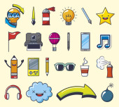 Ikony przedmioty student lub uczeń w stylu ręcznie rysunku.