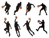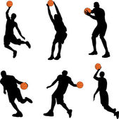 Zestaw koszykarzy rzucanie piłkę izolowane na białym tle wektor ilustracji