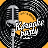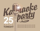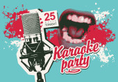 Plakat muzyczny na karaoke z napisem kaligraficznym, mikrofonem i ustami, które śpiewają na różowym tle w stylu retro. Odpowiedni na baner wektorowy, ulotkę, zaproszenie