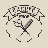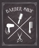 Background consisting of items for haircuts and the inscription barber shop.Illustration in ink hand drawn style.